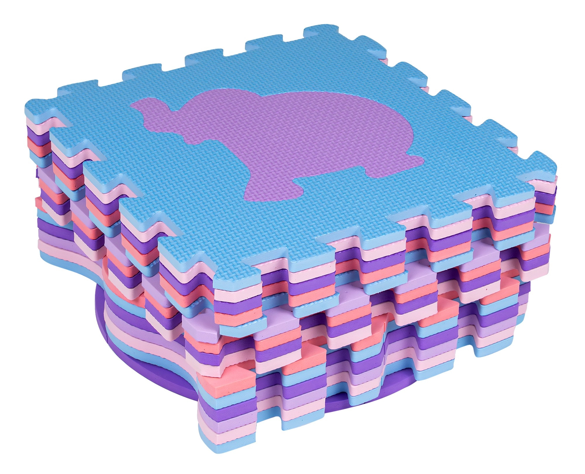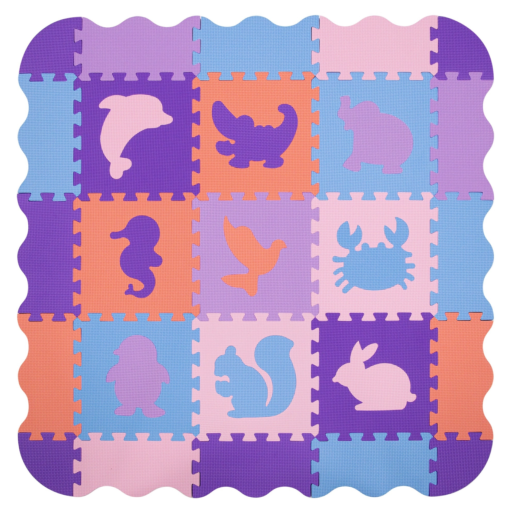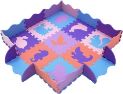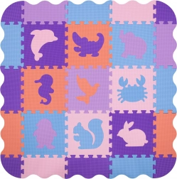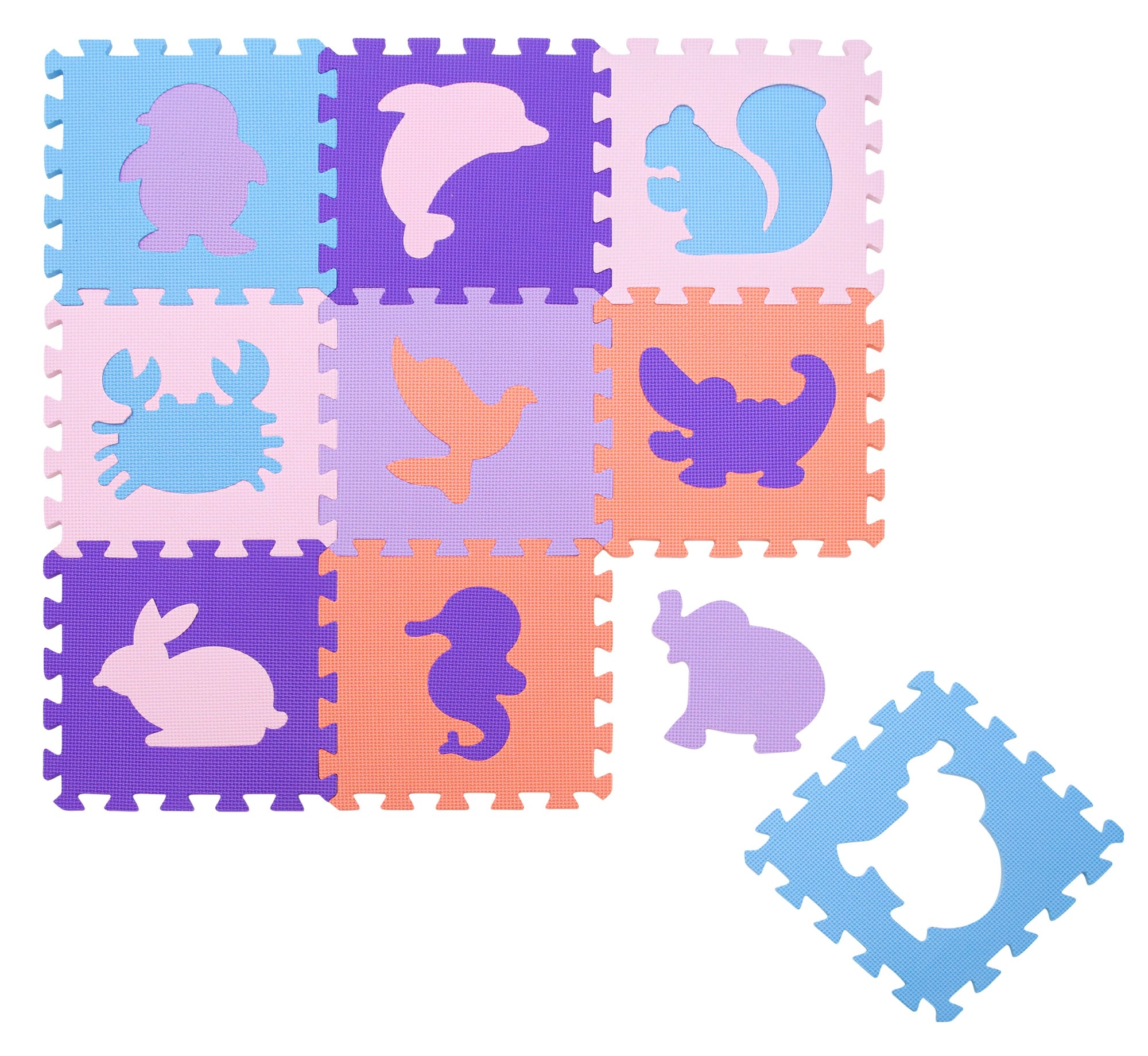 Der sichere EVA-Werkstoff ist elastisch, stoßdämpfend und isoliert Kälte vom Boden hervorragend. Die texturierte Oberfläche ist rutschfest – ideal für erste Krabbel- und Gehversuche. Jedes Teil besitzt ein herausnehmbares Tiermotiv (Pinguin, Delfin, Eichhörnchen, Krabbe, Taube, Krokodil, Kaninchen, Seepferdchen, Elefant), sodass Kinder Feinmotorik und Logik spielerisch trainieren.