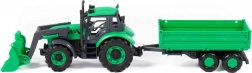 Im Lieferumfang ist ein Pritschenanhänger enthalten, der sich leicht ankuppeln lässt und den Transport von Spielzeug, Sand oder Bausteinen ermöglicht. Die öffnende Motorhaube mit Arretiermöglichkeit erhöht den Realismus und lehrt Kinder Sorgfalt beim „Service“ der Maschine.
