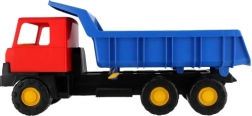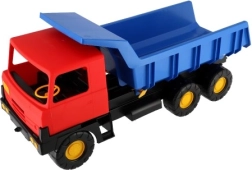 Robuster Plastik-Kipplaster mit blauer Mulde und roter Fahrerkabine, 75 cm lang – das ideale Spielzeug für Sandkasten und Garten. Bietet eine funktionale kippbare Mulde für realistisches Spiel und fördert Kreativität, Motorik und Outdoor-Spaß.