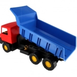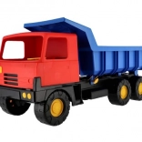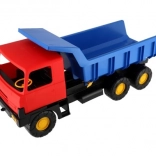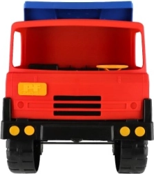 Die leuchtenden Farben – blaue Mulde und rote Kabine – fallen sofort ins Auge und fördern das Spiel zu Hause und im Freien. Das Fahrzeug verfügt über stabile Räder für eine gleichmäßige Fahrt auf verschiedenen Untergründen und bietet mit seiner Länge von 75 cm viel Raum für fantasievolles Spiel.