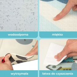 Die 1 cm starke XPE-Schicht dämpft Stöße hervorragend, isoliert gegen Kälte und ist geruchlos sowie frei von Schadstoffen. Perfekt zum Spielen, Krabbeln und für die ersten Schritte.
