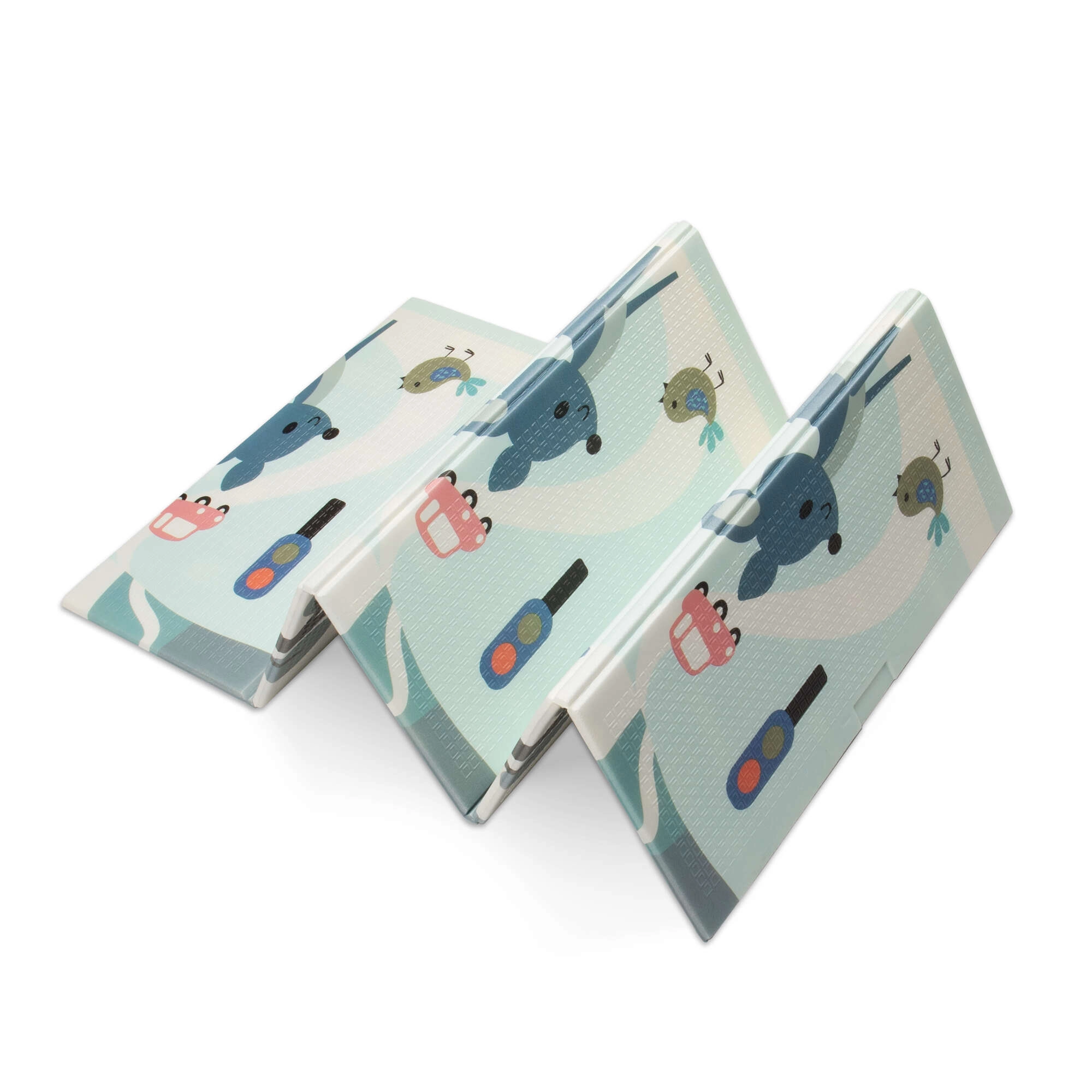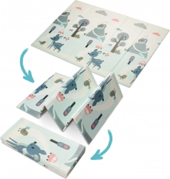 Die Matte ist akkordeonartig faltbar und in wenigen Sekunden aus- oder eingeklappt. Sie ist leicht, wasserfest und lässt sich einfach mit einem feuchten Tuch abwischen – eine hervorragende Wahl auch für Allergiker, da sie keinen Staub und keine Milben bindet. Inklusive Reißverschlusstasche mit Henkeln für bequemes Mitnehmen in den Garten, auf den Balkon, zum Picknick oder auf Reisen.