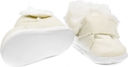 Stylische, warme Schühchen aus umweltfreundlichem Wildleder-Imitat wurden für maximalen Komfort von Babys im Alter von 3–6 Monaten entwickelt. Innen sind sie mit weicher Fleece-Strickware (100 % Polyester) ausgekleidet, die hervorragend isoliert und auch an kühlen Tagen wohlige Wärme bietet. Dank des großzügigen Innenraums haben die Zehen ausreichend Platz für natürliche Bewegung und gesunde Entwicklung.