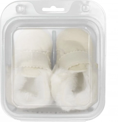 Der praktische Klettverschluss ermöglicht schnelles Anziehen und einen sicheren Sitz am Fuß. Die dünne, weiche PVC-Sohle ohne BPA ist leicht und flexibel – perfekt für Komfort im Kinderwagen oder zu Hause. Die Innenlänge der Einlegesohle beträgt 11 cm und die Schühchen kommen in einer praktischen Schachtel, ideal auch als Geschenk.