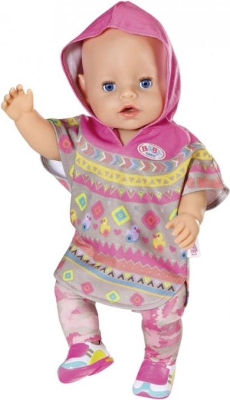 Gönnen Sie Ihrer BABY born Puppe ein neues Outfit voller Farbe und Komfort. Dieses Set kombiniert verspieltes Design mit praktischer Ausführung – das kuschelweiche Poncho mit Kapuze, die bequeme Hose mit Camouflage-Muster und die passenden Schühchen ergeben einen perfekt harmonischen Look für jeden Anlass.