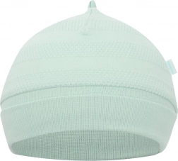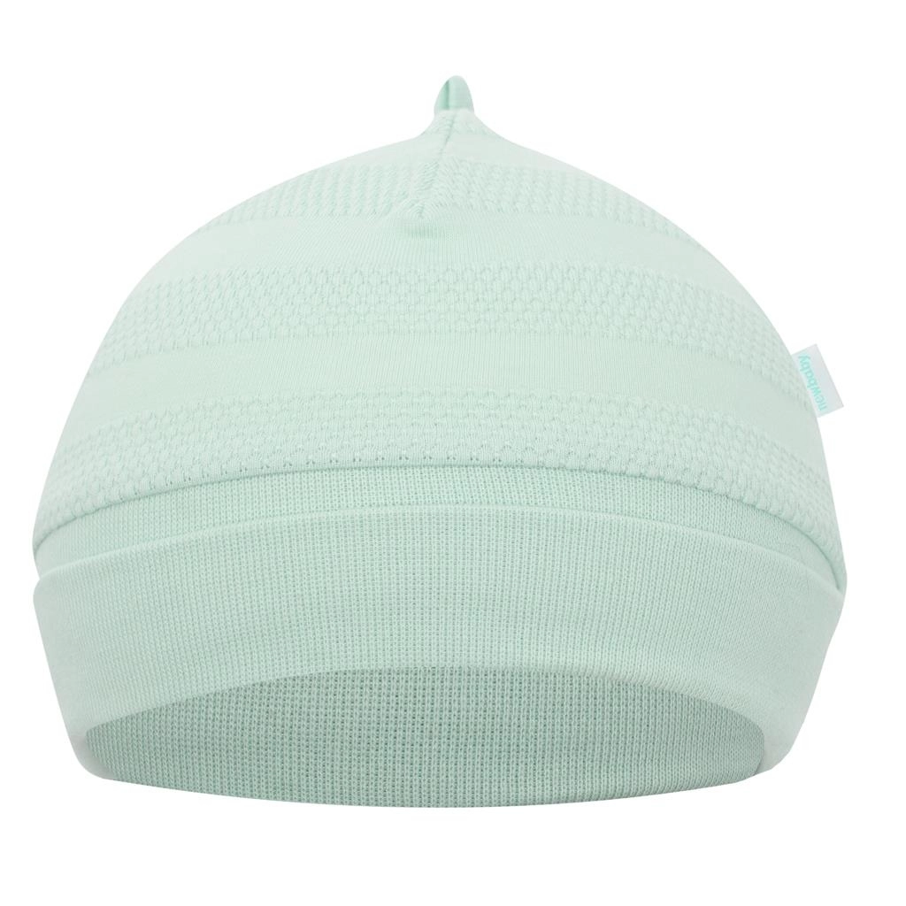 Das mintfarbene Mützchen mit breiterem Saum ist weich, elastisch und sitzt zuverlässig auf dem Köpfchen, ohne zu verrutschen.