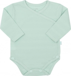 Die Schlupfhosen haben einen breiteren, elastischen Bund, der nicht auf das Bäuchlein drückt, sowie integrierte Füßchen für dauerhafte Wärme und Schutz. Das Mützchen mit breiterem Saum sitzt fest, aber sanft, rutscht nicht und drückt nicht. Der gesamte Set wird durch die attraktive Materialstruktur in modernem Mint betont und kommt in einer ökologischen Geschenkbox – ideal als liebevolles Geschenk für Neugeborene.