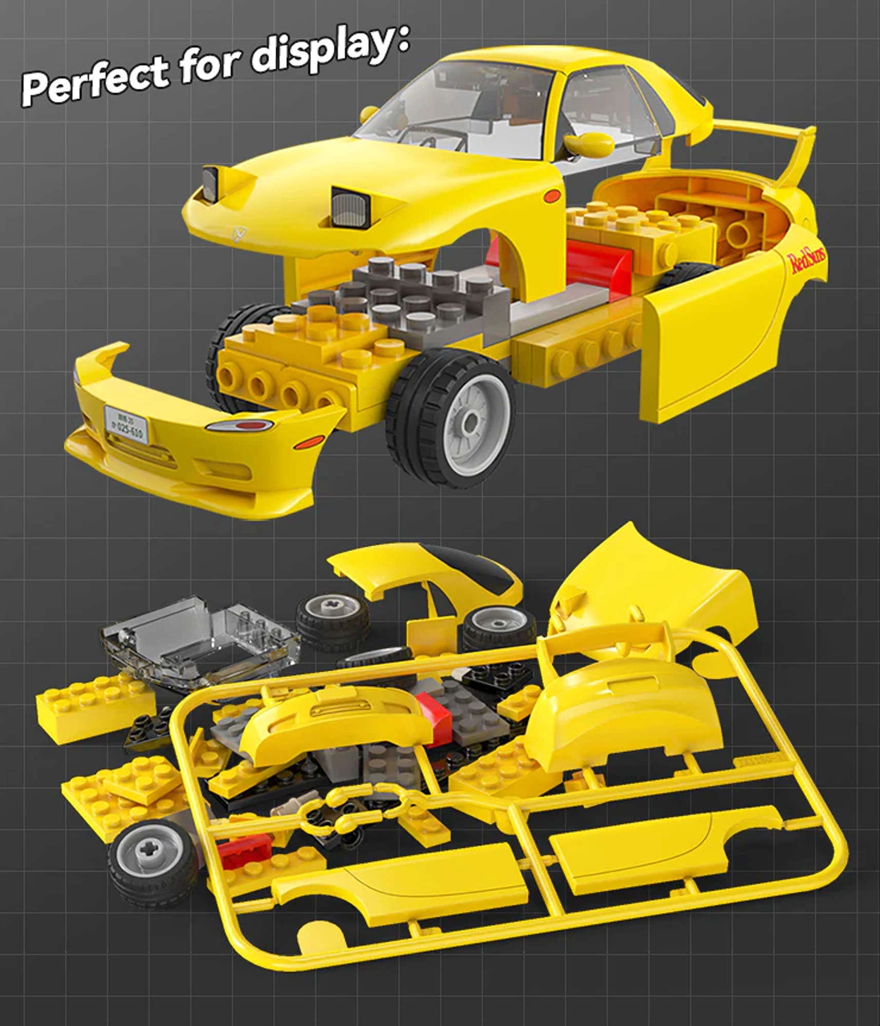 Genießen Sie den Aufbau des legendären Fahrzeugs aus der Serie Initial D – das Modell MAZDA RX-7 FD3S in elegantem Gelb. Dank der 66 Teile ist das Set ideal für weniger erfahrene Baumeister und Kinder ab 8 Jahren. Gummireifen sorgen für leichtes Rollen auf unterschiedlichen Untergründen, und die liebevollen Details begeistern Fans der Kultserie sowie Sammler.