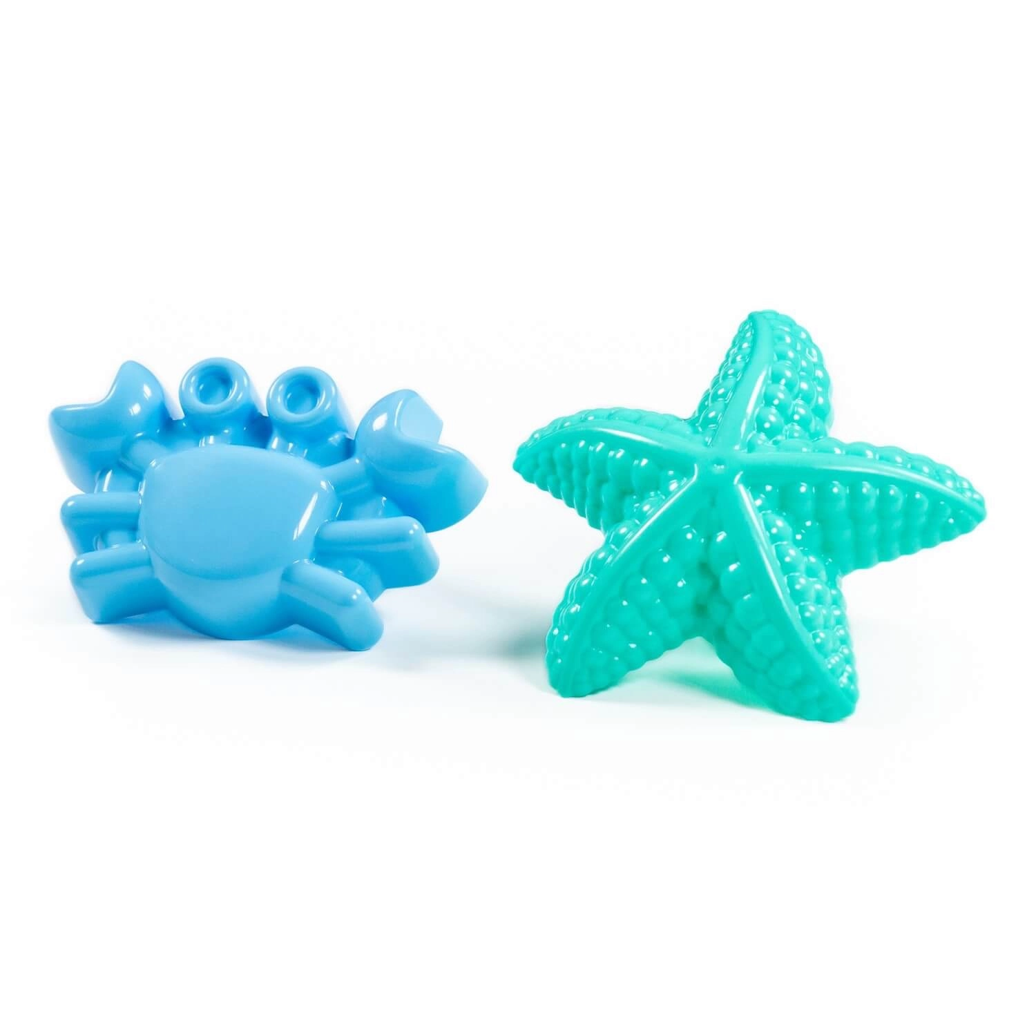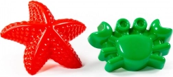 Das Set umfasst zwei praktische Förmchen mit Meeresmotiven (z. B. Seestern und Krabbe), die Kinder einfach in den Sand drücken, um schöne Formen zu gestalten. Das Material ist leicht zu reinigen und eignet sich für das Spielen draußen wie auch im Wasser zu Hause.