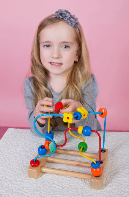 Das Kinderlabyrinth mit Marienkäfer von Bino ist ein ideales erstes Motorikspielzeug. Bunte Perlen in Form von Tieren und Blumen bewegen sich auf Metalldrähten über einer Holzbasis, was Geduld und Konzentration fördert und spielerisch die Fähigkeiten von Kleinkindern entwickelt.
