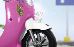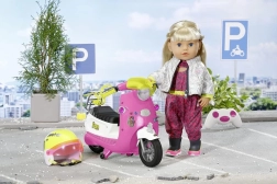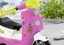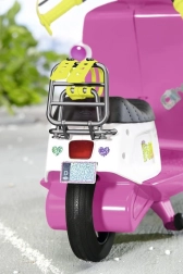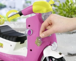 Die Bedienung des Scooters ist sehr einfach, er kann vorwärts und rückwärts fahren und die Blinker blinken beim Abbiegen, was eine sehr effektvolle Funktion ist. Er ist ideal für den Transport von Puppen mit einer Größe von 43 cm und kann dank ausgeklügelter Effekte noch attraktiver sein.