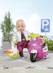 Der BABY born Roller mit Fernsteuerung ist das perfekte Accessoire für jede Puppensammlung. Er bietet nicht nur großen mobilen Spaß, sondern sieht auch großartig aus mit neonfarbenen Details und glitzernden Aufklebern für individuelle Dekoration. Der Roller ist mit Lichteffekten ausgestattet und dank der Griffe am Lenker sitzt die Puppe sicher. Er passt perfekt zu allen Produkten aus der Stadt-Kollektion.