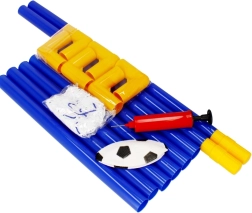 Das Set wird als Komplettpaket geliefert: Tor aus Verbindungsrohren, Netz, Ball und Handpumpe. Die Heringe sorgen für Standfestigkeit des Tores auf Rasen, während das robuste Netz jeden Treffer zuverlässig auffängt. Perfekt zur Förderung von Koordination, Bewegung und Teamspiel.
