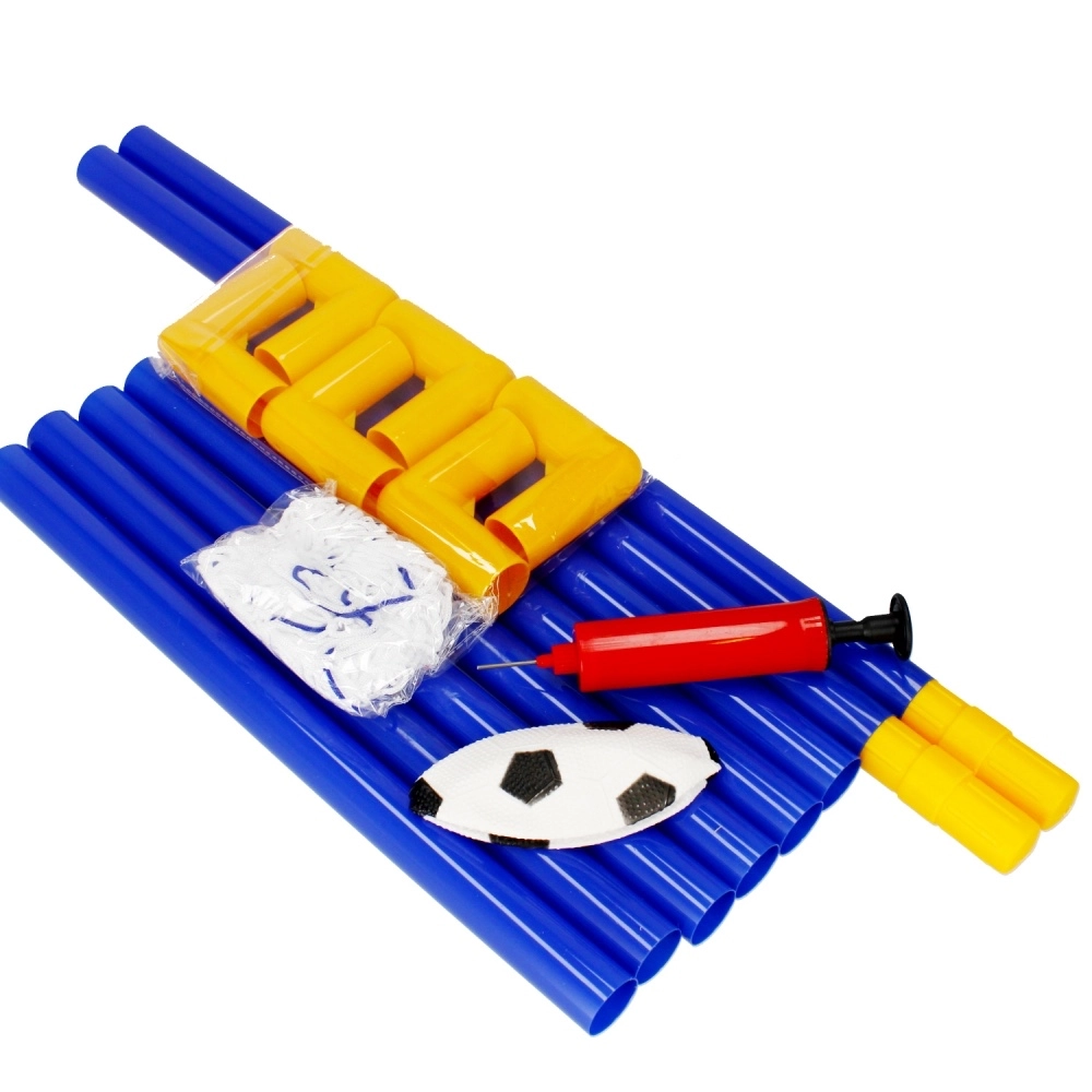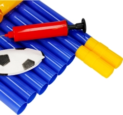 Im Paket finden Sie Tor, Netz, Ball, Handpumpe und Heringe – einfach zusammenbauen und losspielen.