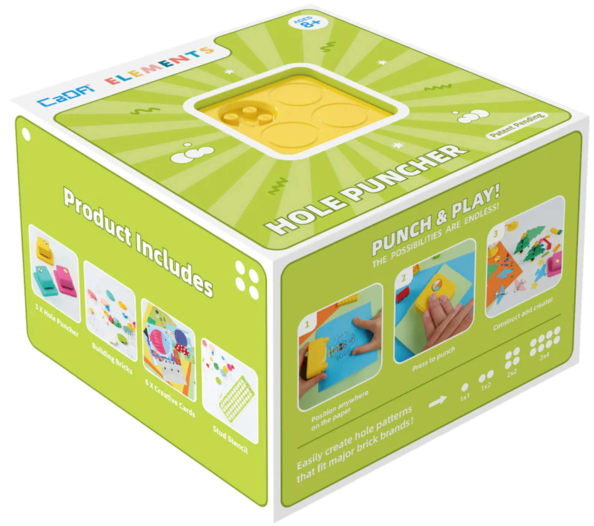 Der verstellbare gelbe CaDA-Locher ist ein cleveres Kreativwerkzeug, mit dem Kinder originelle Muster in Papier stanzen und anschließend mit farbigen Bausteinen ausfüllen können. Die transparente magnetische Unterlage sorgt für präzise Ausrichtung und komfortable Nutzung. Das Set eignet sich hervorragend für das Basteln zu Hause, für Workshops und als Geschenk, das zu fantasievollem Design inspiriert.