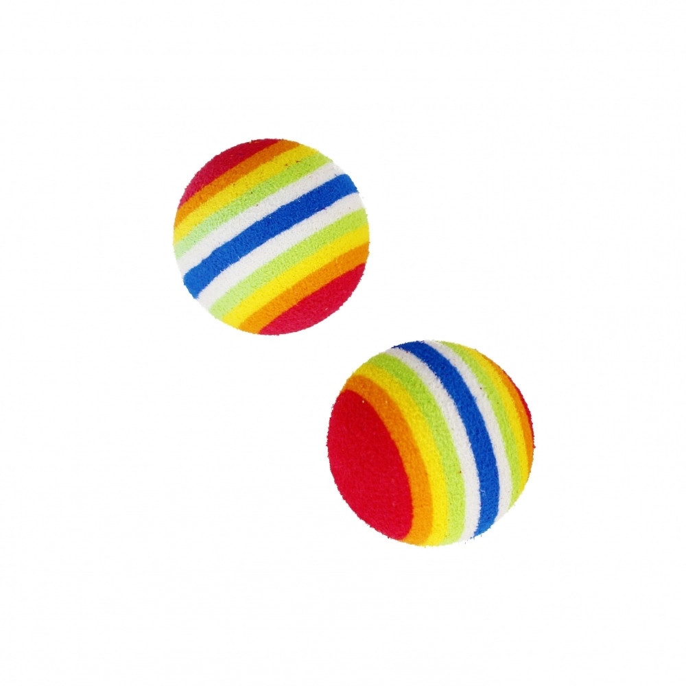 Zwei leichte Schaumstoffbälle mit Regenbogenmuster sind schonend für den Innenraum und eignen sich für ein sichereres Spiel.