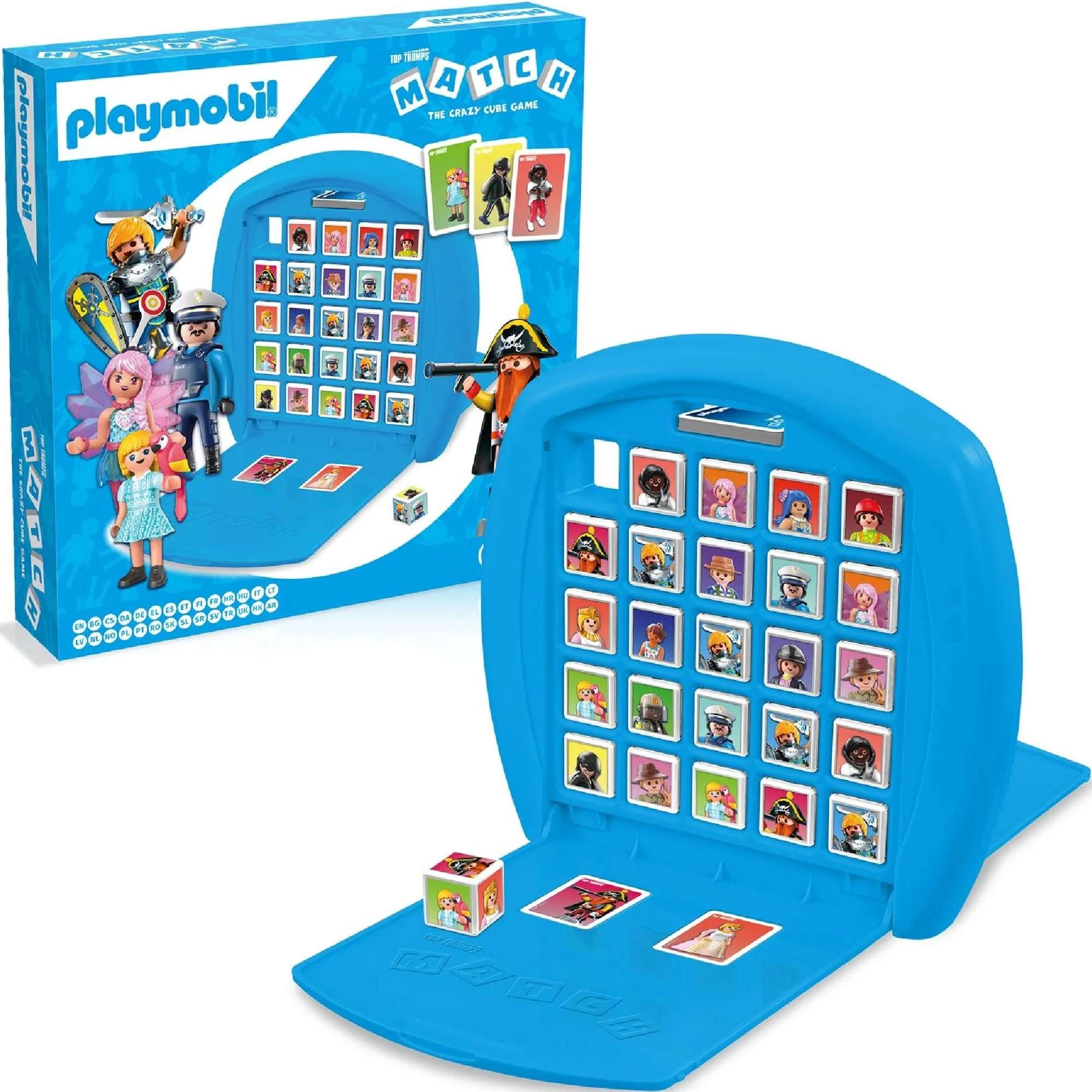Suchen Sie ein schnelles, spannendes und zugleich cleveres Spiel für Kinder und Erwachsene? Top Trumps Match PLAYMOBIL bringt eine einfache Regel mit – bilden Sie eine Reihe aus fünf gleichen Symbolen und sammeln Sie Punkte. Treffen Sie zusätzlich die Figur auf Ihrer Geheimkarte, erhalten Sie Extrapunkte. Ideal für Geschwister und Eltern, die flotte Duelle unterwegs genießen möchten.