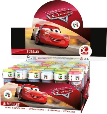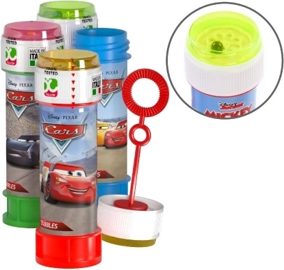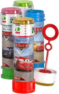 Seifenblasen mit Cars-Motiv mit einem Volumen von 60 ml bieten viel Spaß dank des bunten Deckels, in dem ein lustiges Spiel versteckt ist. Der Puster ist Teil des Deckels.