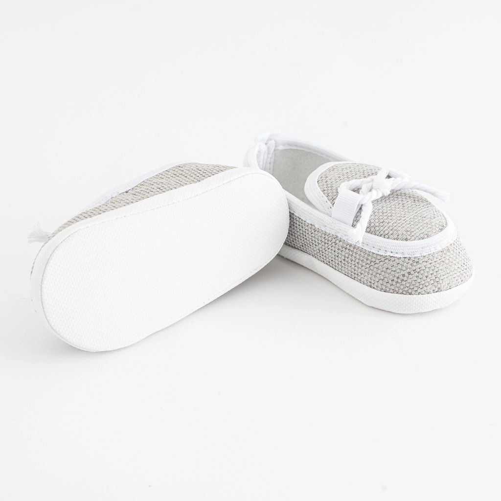 Diese eleganten Krabbelschuhe im Mokassin-Stil der Marke New Baby überzeugen durch ein modernes Design und eine praktische Ausführung. Dank der anliegenden Passform sitzen sie gut am Fuß, und der breite Innenraum ermöglicht die natürliche Entwicklung von Zehen und Muskulatur. Die weiche und dünne PVC-Laufsohle ohne BPA ist ideal zum Krabbeln, Sitzen und für erste Stehversuche, jedoch nicht zum Gehen.