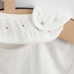 Entdecken Sie den Komfort und die Leichtigkeit des Musselin-Lätzchens New Baby Arthur. Das fein gewebte, atmungsaktive Material sorgt für hervorragende Luftzirkulation und hilft, Ihr Baby den ganzen Tag über bequem zu halten. Dank der cleveren Druckknopf-Verschlüsse lässt sich das Lätzchen einfach auf zwei Größen anpassen und passt so perfekt in verschiedenen Wachstumsphasen.