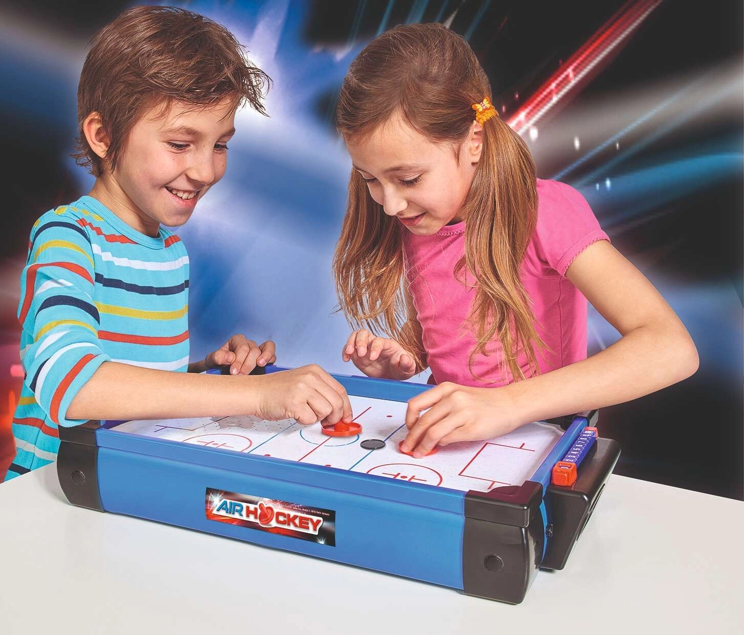 Genießen Sie beliebten Airhockey in der tragbaren Mini-Version, die die Regeln des klassischen Spiels originalgetreu abbildet. Kleinere Tore und Pucks machen das Spiel flott und spannend, manuelle Zähler über den Toren ermöglichen eine schnelle Ergebniskontrolle. Ideal für kurze Turniere mit Freunden und der Familie.