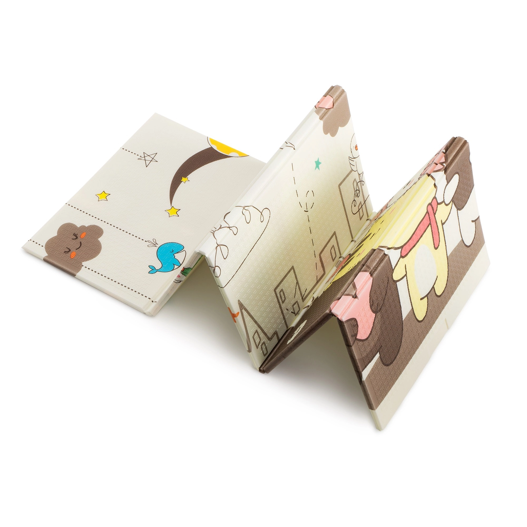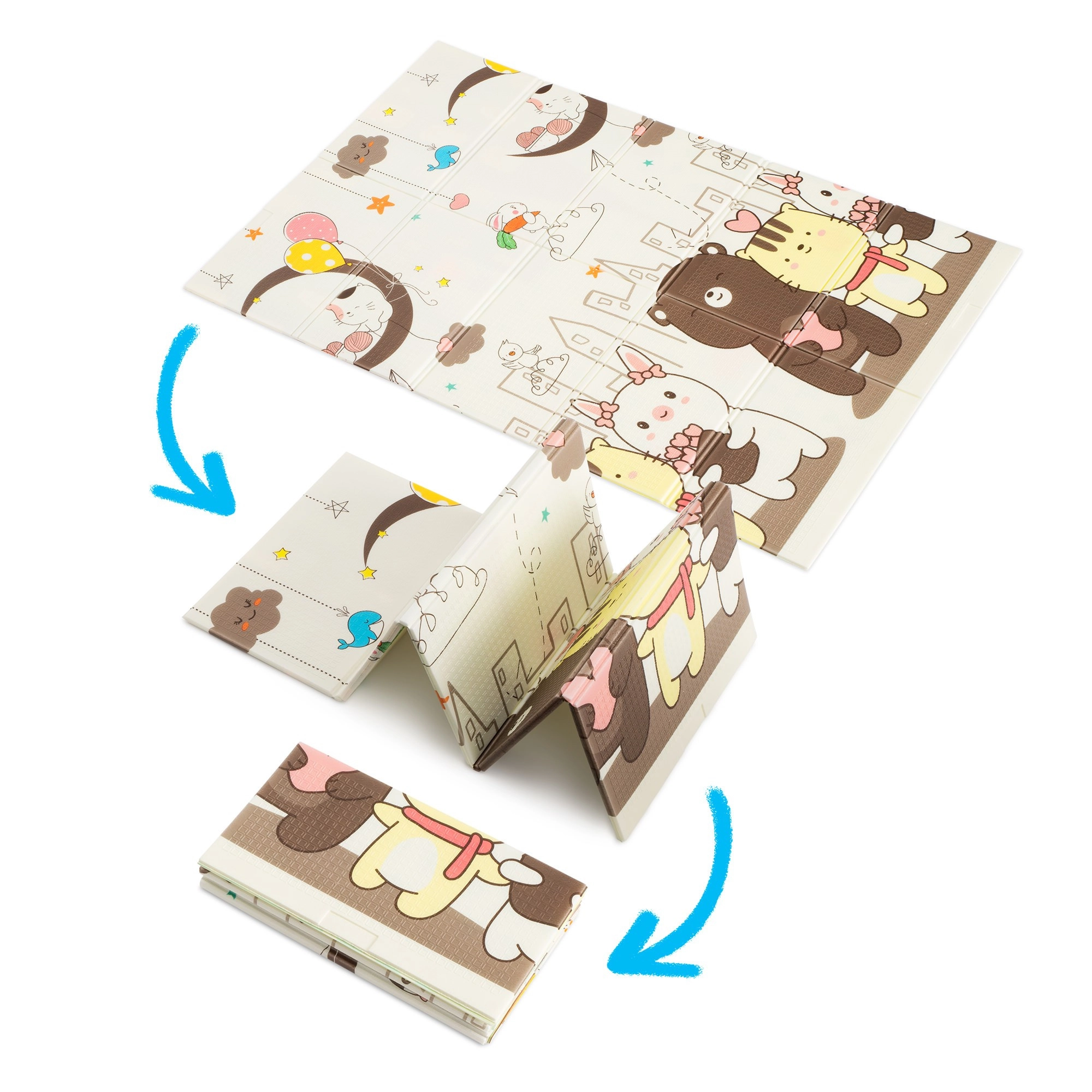 Die Matte lässt sich in wenigen Sekunden in kompakte Paneele falten. Inklusive Tragetasche mit Reißverschluss und Henkeln – ideal für Park, Picknick und Reisen.