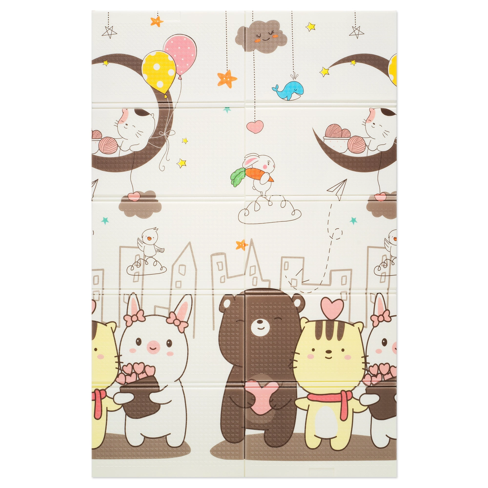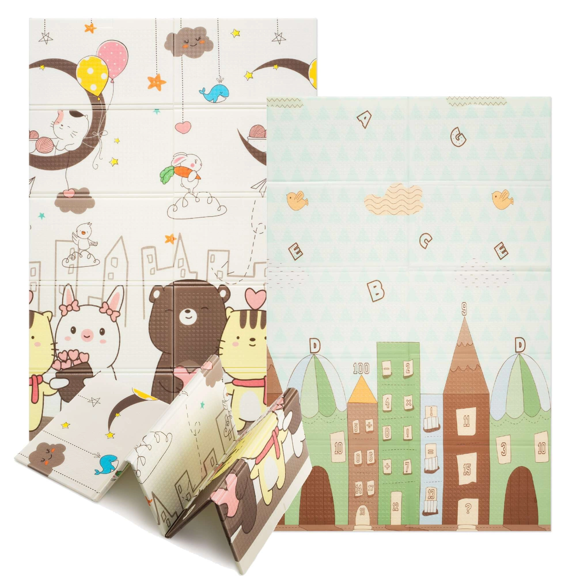 Die großformatige HUMBI-Spielmatte aus Premium-XPE-Schaum bietet einen komfortablen und hygienischen Platz für Babys und größere Kinder. Dank der Stärke von 0,8 cm dämpft sie Stöße, isoliert gegen Kälte und ihre fein strukturierte, rutschfeste Oberfläche unterstützt sicheres Krabbeln und Laufen. Mit dem beidseitigen Design und niedlichen Tier-, Häuschen- und Zahlenmotiven belebt sie jedes Kinderzimmer und Wohnzimmer.