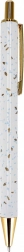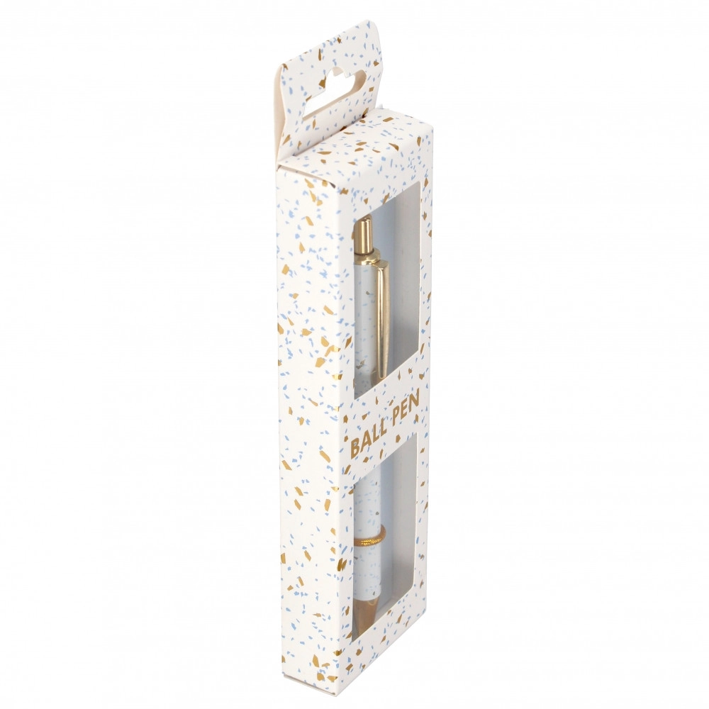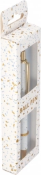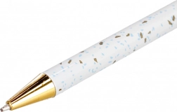 Das moderne Terrazzo‑Design in Weiß mit goldenen und blauen Akzenten wird durch elegante Metalldetails ergänzt und wirkt sowohl auf dem Schreibtisch als auch als kleines Geschenk repräsentativ. Die Stiftlänge beträgt etwa 14 cm – liegt gut in der Hand und passt in gängige Etuis.