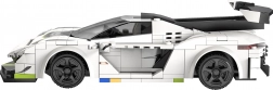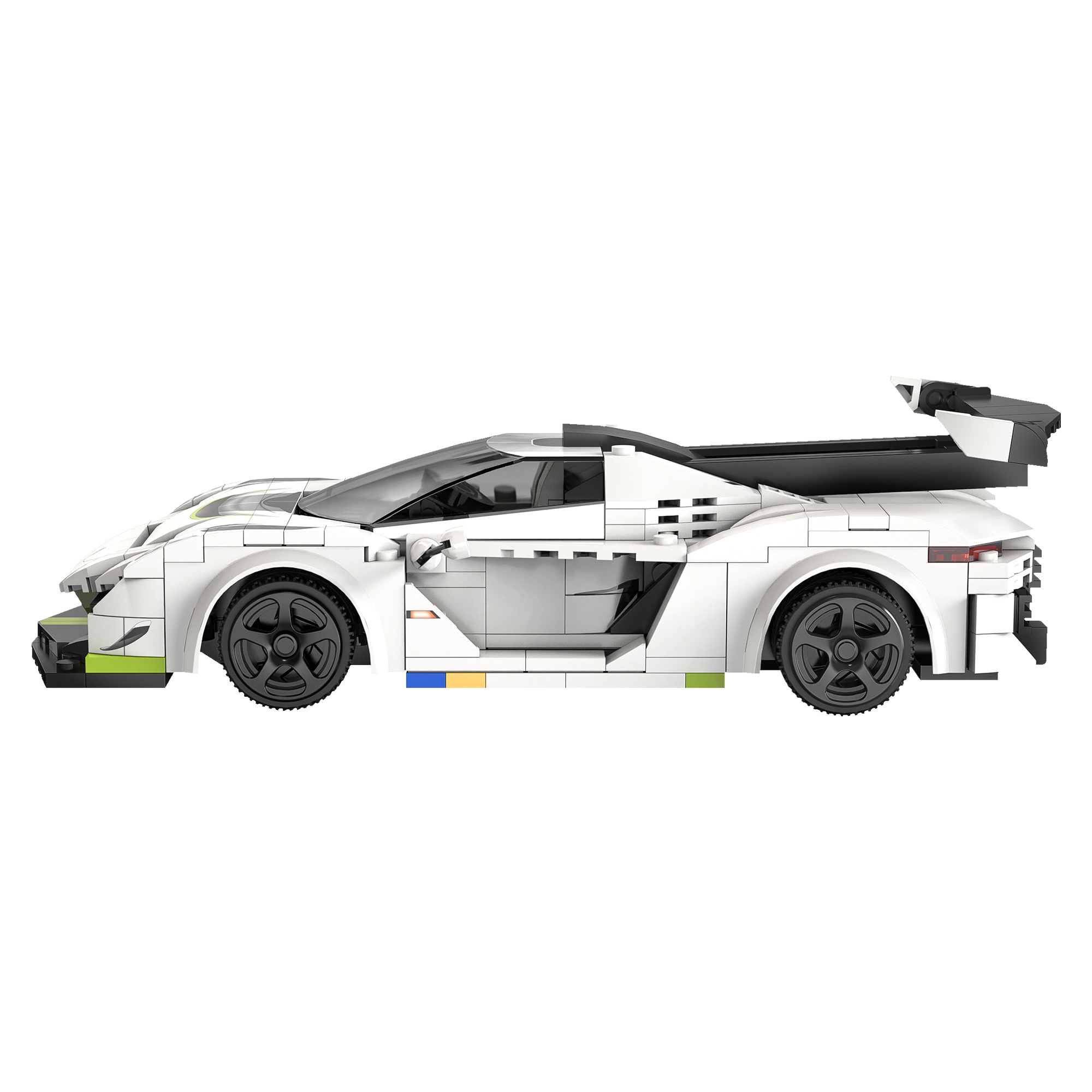 Die weiße Karosserie mit schwarzen und limettengrünen Akzenten, der große Heckflügel und detailreiche Panels verleihen dem Modell den authentischen Look eines Supersportwagens – fürs Regal und die Strecke.