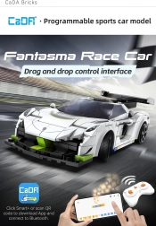Genießen Sie das smart designte CaDA-Bauset aus der Reihe Make Your Bricks Move, das Hand-Auge-Koordination, Aufmerksamkeit und Kreativität fördert. Das FANTASMA Race Car im Maßstab 1:20 überzeugt mit ausgearbeiteten Details, aerodynamischen Elementen und einem Cockpit mit Abdeckung. Nach dem Aufbau erhalten Sie ein voll funktionsfähiges RC-Auto mit Gummireifen-Antrieb und sensitiver Lenkung.