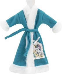 Stilvoller Puppenbademantel mit samtig-weicher Oberfläche und Bindegürtel, wärmt nach dem Baden und bei abendlichen Ritualen. Erhältlich in einem Mix aus Farben und Motiven (z. B. Einhorn), lässt sich leicht mit anderen Outfits kombinieren.
