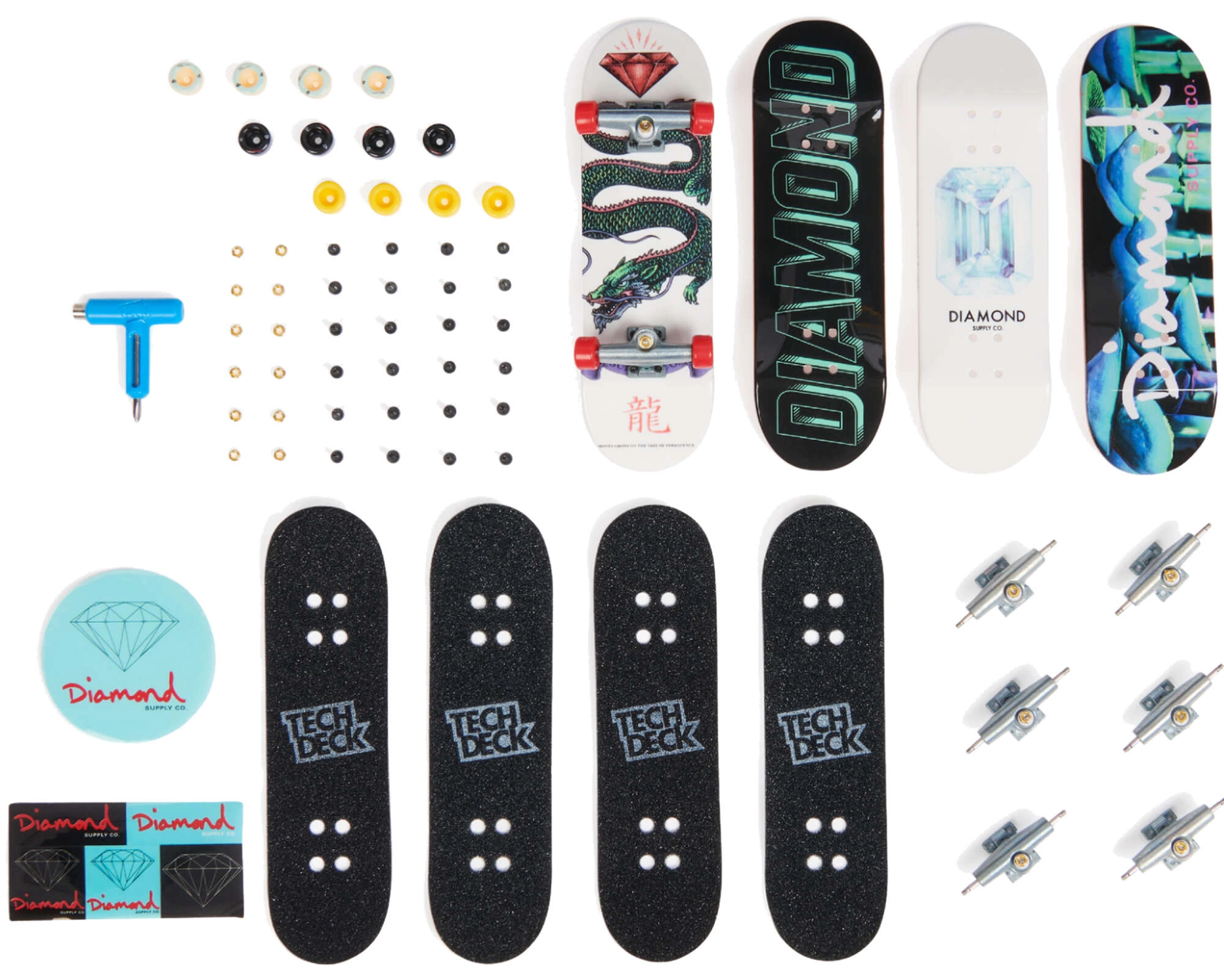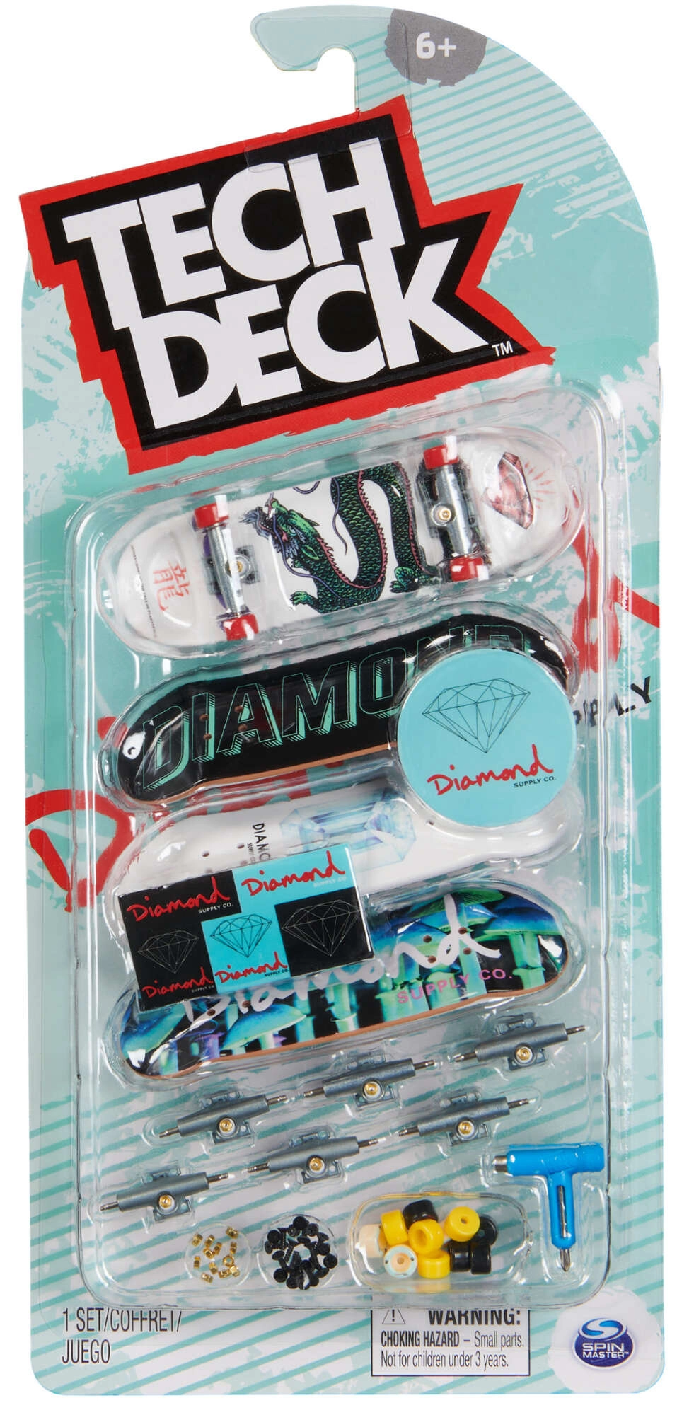 Dieses 4-teilige TECH DECK-Fingerboard-Set ist ideal für Einsteiger und Fortgeschrittene. Bauen Sie sich Ihre eigenen Mini-Skateboards von Grund auf, experimentieren Sie mit Komponenten und lernen Sie immer neue Trick-Kombinationen. Die kultige Reihe ist seit über 20 Jahren auf dem Markt und begeistert durch Qualität und realistisches Design.