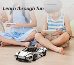 Der CaDA-Sportwagen überzeugt mit realistischen Proportionen, robuster Konstruktion und einer attraktiven weißen Karosserie mit schwarzen Elementen. Dank Antrieben und präziser Lenkung genießen Sie sanftes Vor- und Rückwärtsfahren sowie exaktes Kurvennehmen. Dual Mode erlaubt die Steuerung per klassischer Fernbedienung oder via Smartphone mit Bluetooth – Spaß drinnen und draußen.