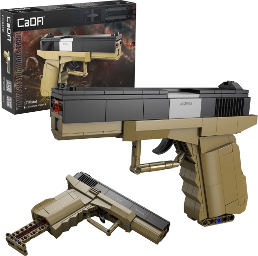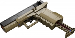 Dieser detaillierte Baukasten überzeugt mit einem ausgearbeiteten Look in Schwarz-Braun und einer cleveren Konstruktion für flüssiges Nachspielen von Szenarien. Dank beweglicher Elemente wie Abzug und Schlitten erhalten Sie ein realistisches Gefühl beim Bauen und Spielen. Die Projektile werden direkt in den Lauf geladen, und die Waffe hat ein herausnehmbares Magazin.