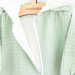 Der seitliche Reißverschluss über die gesamte Länge erleichtert An- und Ausziehen sowie Wickeln, der Reißverschlussschutz am Hals erhöht den Komfort. Der Overall ist vielseitig einsetzbar – praktisch im Kinderwagen, Autositz und für tägliche Spaziergänge. Die universelle Salbeigrün-Farbe lässt sich leicht mit weiterer Erstausstattung kombinieren.