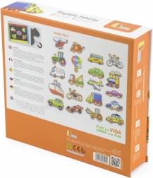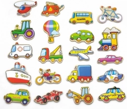 Entdecken Sie die Welt des Verkehrs mit unserem Set aus Holzmagneten. Dieses Set umfasst 20 verschiedene Verkehrsmittel, die Kindern helfen, Fahrzeuge zu erkennen und zu benennen.