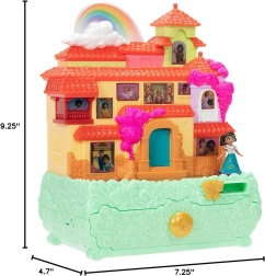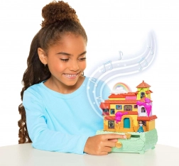 Leuchtende Fenster, öffnende Türen und eine tanzende Mirabel erwecken eine Szene aus ENCANTO zum Leben. Einfach den Schmetterling schieben und das Haus spielt beliebte Melodien.