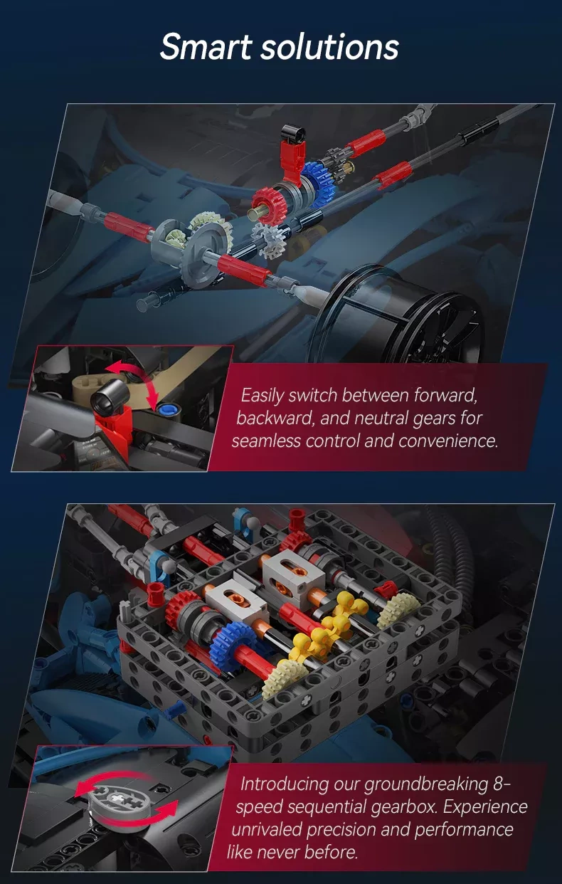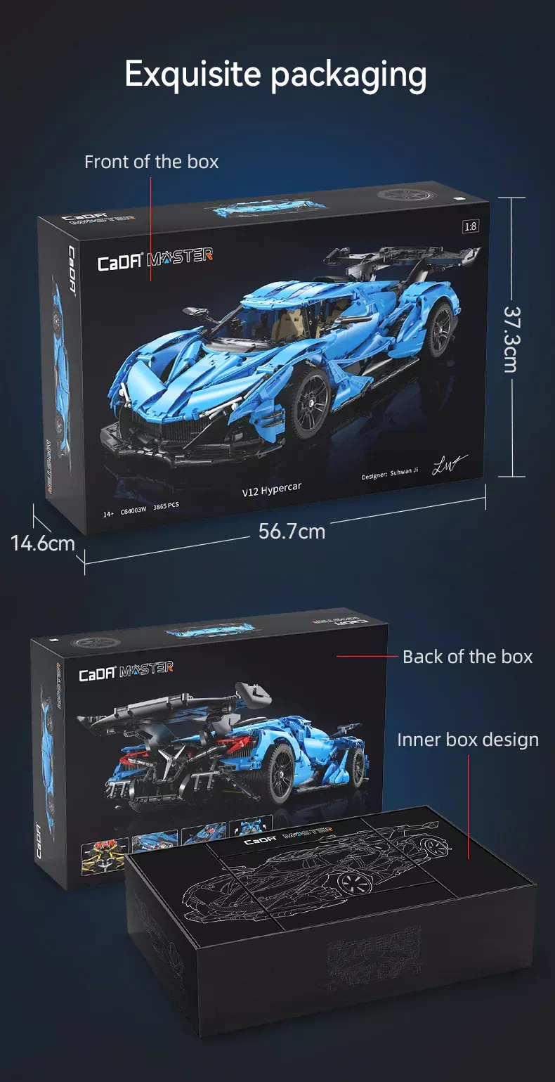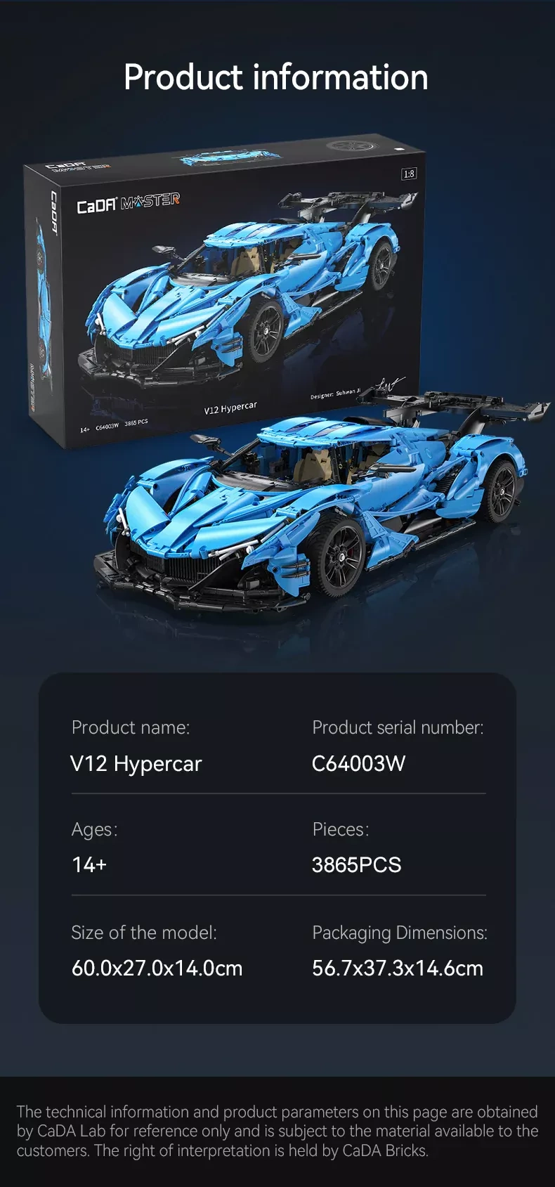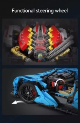 Dieses großformatige V12-Hypercar-Modell aus der Reihe CADA Master begeistert alle Fans technischer Baukästen. Beim Aufbau erleben Sie durchdachte mechanische Elemente, die das realistische Erlebnis unterstreichen: von der funktionsfähigen Lenkung über öffnende Türen bis hin zu authentischen Cockpit-Details. Dank der eleganten blauen Karosserie wird es zum Blickfang jeder Sammlung.