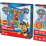 Das Brettspiel verfügt über ein Spielbrett aus Kunststoff mit vier Zonen und Führungen für die Figuren sowie einen praktischen Pop-o-matic-Würfel in der Mitte für einfaches und spaßiges „Würfeln“. Das Puzzle ergibt ein Motiv mit den PAW PATROL-Welpen in der Größe 26,35 × 23,17 cm. Die Jumbo-Karten sind ideal für kleine Hände und bieten verschiedene Spielvarianten.