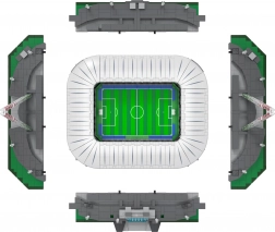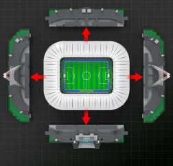 Das Modell ist in sechs Module unterteilt (Spielfeld, vier Tribünen und Dach), sodass Sie es leicht zerlegen und das Innere betrachten können. Die einzigartige „Welle“-Funktion lässt sich über einen Drehregler steuern und bewegt die Sitze nach oben und unten – genau wie in einem echten Stadion. Dank durchdachtem Design und robuster Bauweise ist es ideal zum Bauen, Ausstellen und für Sammler.