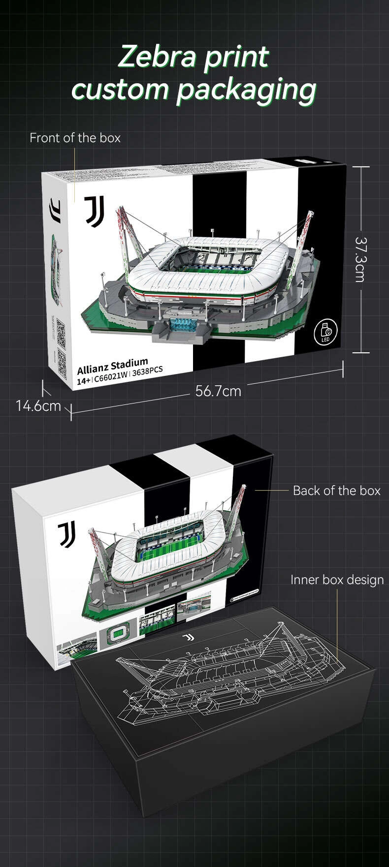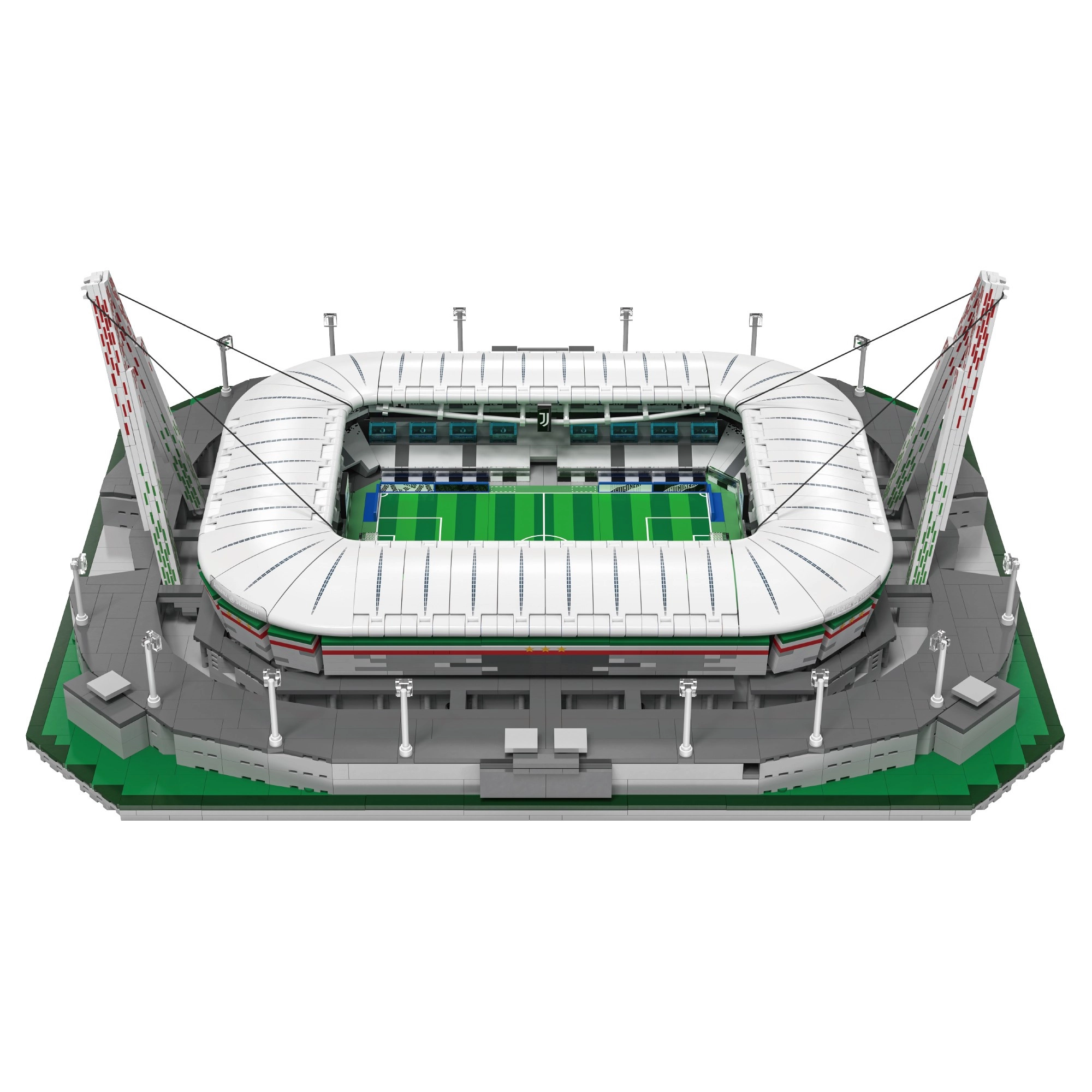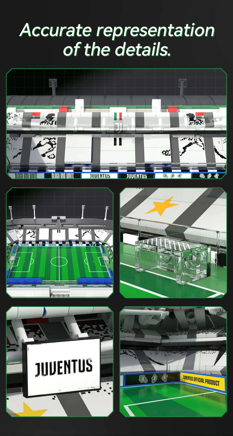 Erschaffen Sie zu Hause ein detailgetreues Modell des Allianz Stadium in Turin – der Heimstätte des italienischen Fußballs. Das CaDA-Set bringt beeindruckende Architektur mit markiertem Spielfeld, Tribünen, Eingängen, Fassadenelementen sowie den charakteristischen Tragpylonen und Kabeln. Enthalten ist ein LED-Lichtmodul mit acht Modi, das das Modell in ein effektvolles Ausstellungsstück verwandelt.