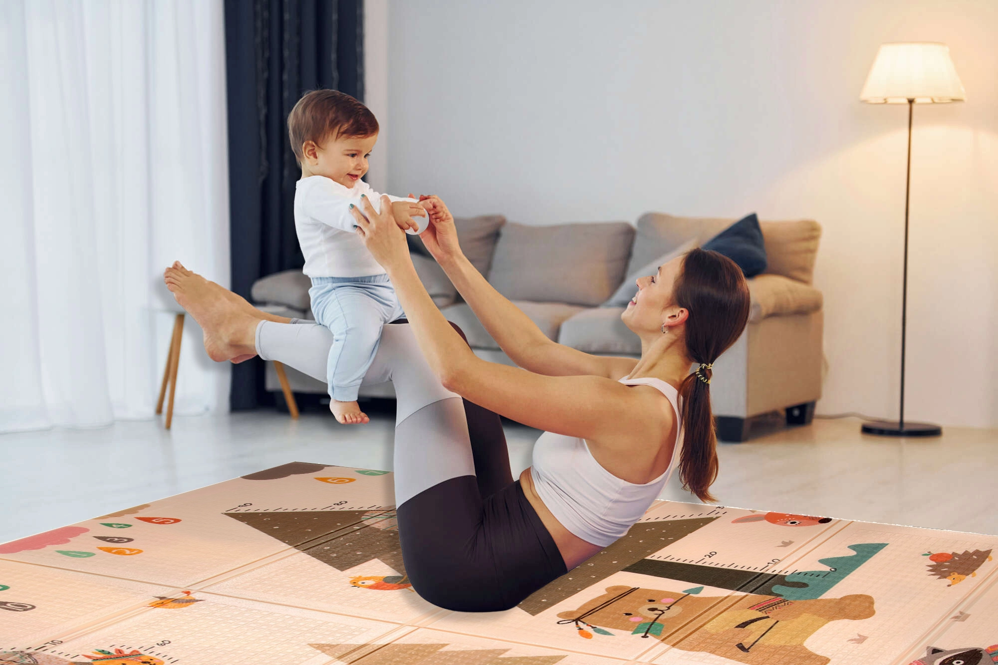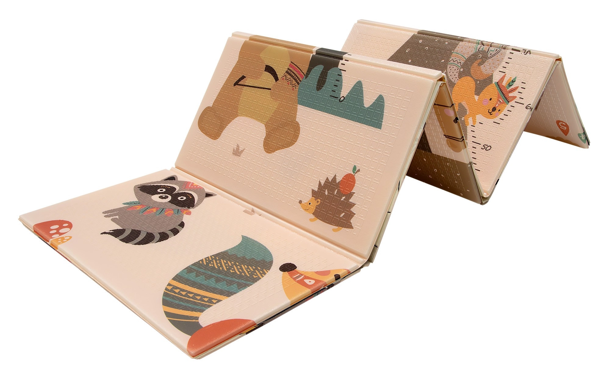 Zwei Seiten mit fröhlichen Motiven fördern die sensorische Entwicklung und das Spiel. Die leicht geprägte, rutschfeste Oberfläche unterstützt sicheres Krabbeln und die ersten Schritte.