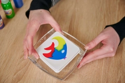 Im vorbereiteten Bad verwandelt sich das flache Motiv in eine weiche 3D-Figur mit schönen Farben – bereit zum Spielen und Ausstellen.