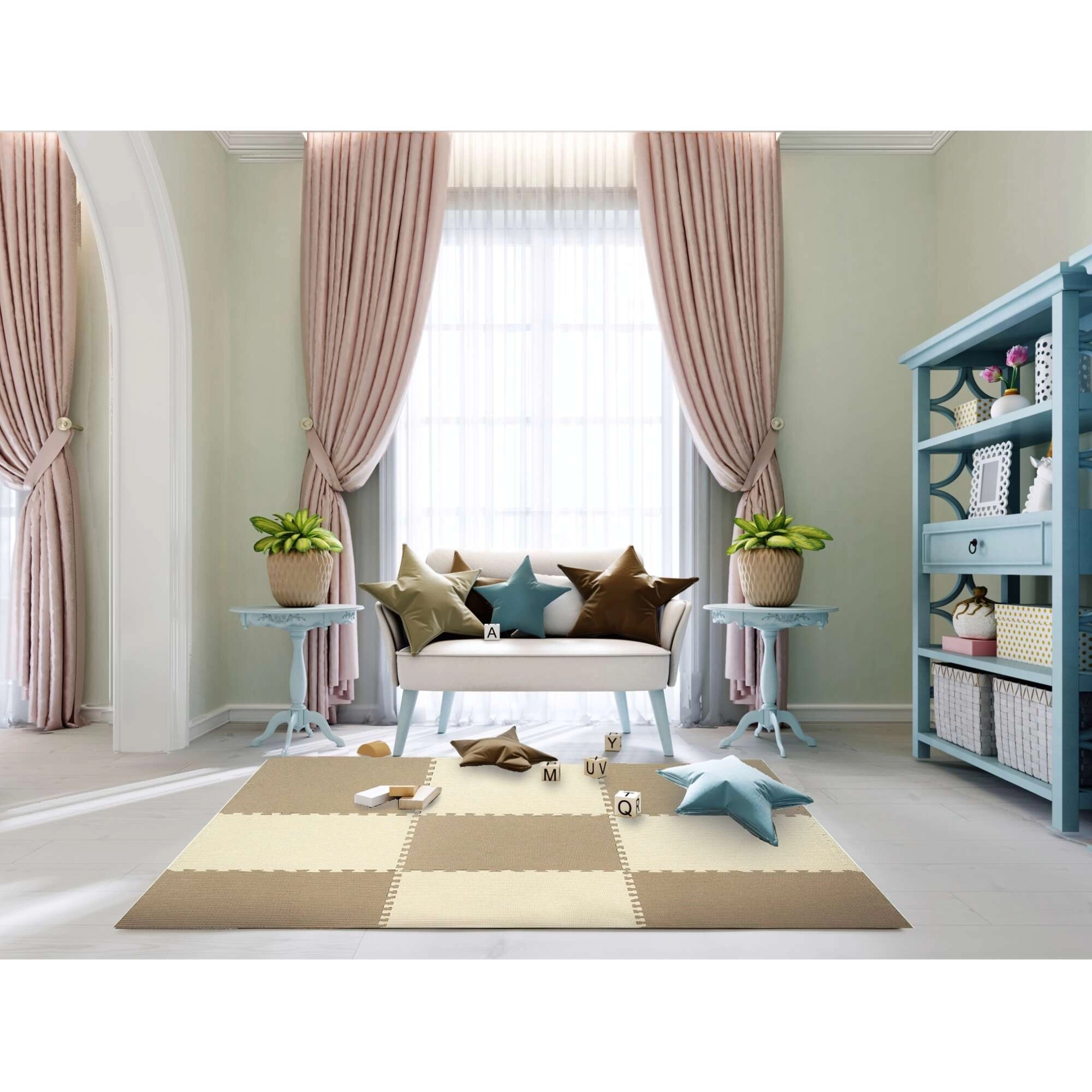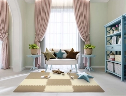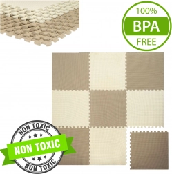 Die HUMBI-Schaumstoffpuzzles aus hochwertigem EVA-Schaum bieten Kindern einen sicheren Bereich für die ersten Drehungen, zum Krabbeln und für die ersten Schritte. Dank der Stärke von 1 cm absorbieren sie Stürze hervorragend und isolieren Kälte von Fliesen, Parkett und Laminat. Das Material ist wasserfest, wodurch die Matte leicht zu pflegen ist – ein feuchtes Tuch genügt. Dezente Creme- und Beigetöne wirken unaufdringlich und ergänzen moderne Einrichtungen.