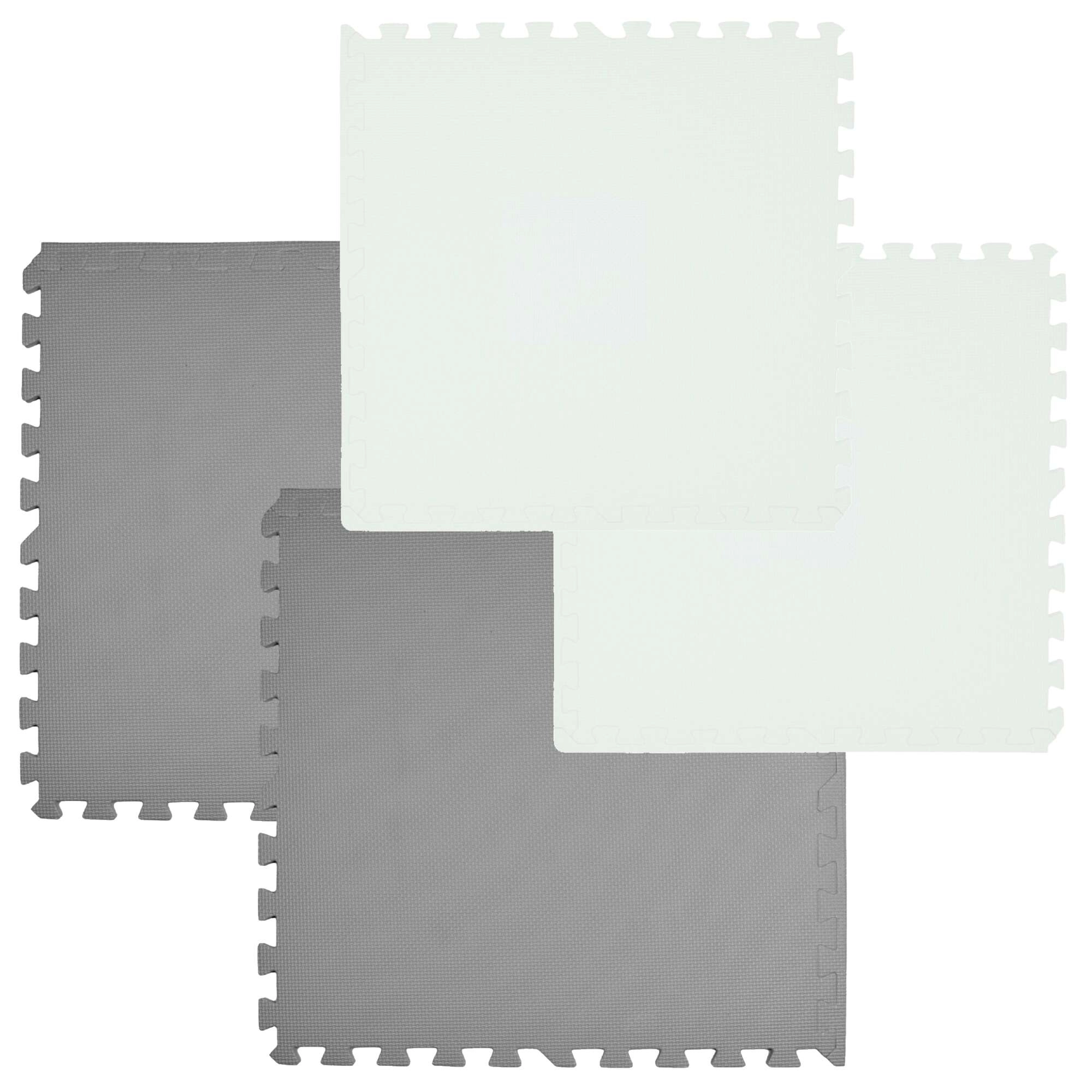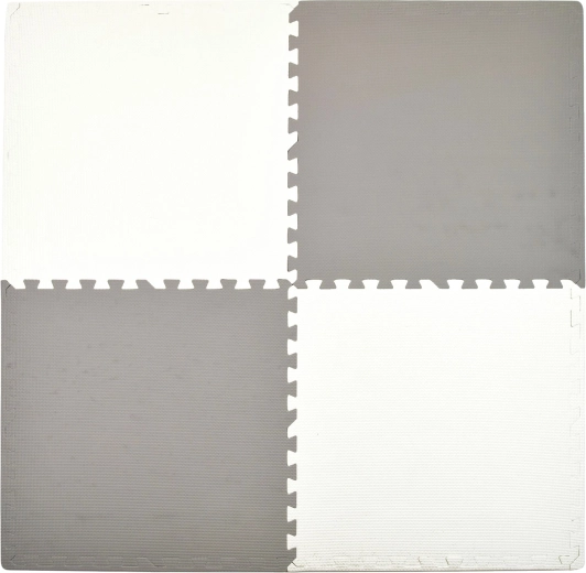 Die elegante HUMBI-Schaumstoffmatte im neutralen grau-weißen Schachbrettmuster passt ins Kinderzimmer wie auch ins Wohnzimmer. Sie bietet Komfort und Sicherheit beim Spielen, ist frei von Phthalaten, Formamid, BPA und PVC und erfüllt EN 71 sowie REACH. Dank des Puzzlesystems können Form und Größe individuell angepasst werden, Randleisten sorgen für einen sauberen Abschluss.