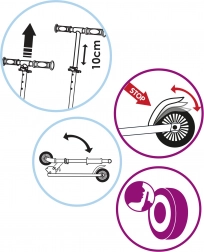 Für Komfort und Sicherheit sorgen die verstellbare Lenkerhöhe (wächst mit dem Kind), weiche Schaumstoffgriffe, ein rutschfestes Trittbrett sowie die Fußbremse am hinteren Schutzblech. Leise, rutschfeste Rollen gewährleisten eine sanfte Fahrt auf dem Gehweg. Eine hervorragende Wahl zur Förderung von Balance, Koordination und Fahrvertrauen.