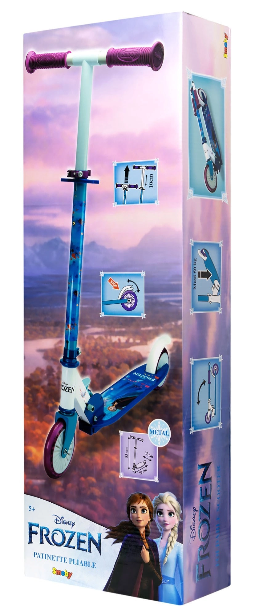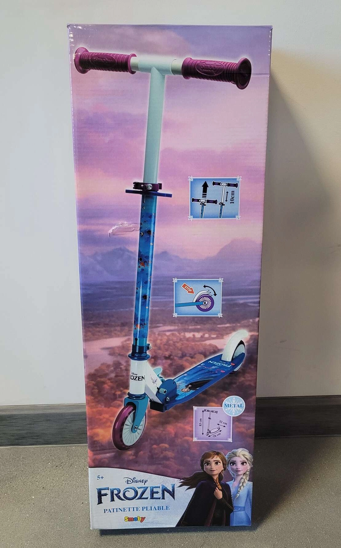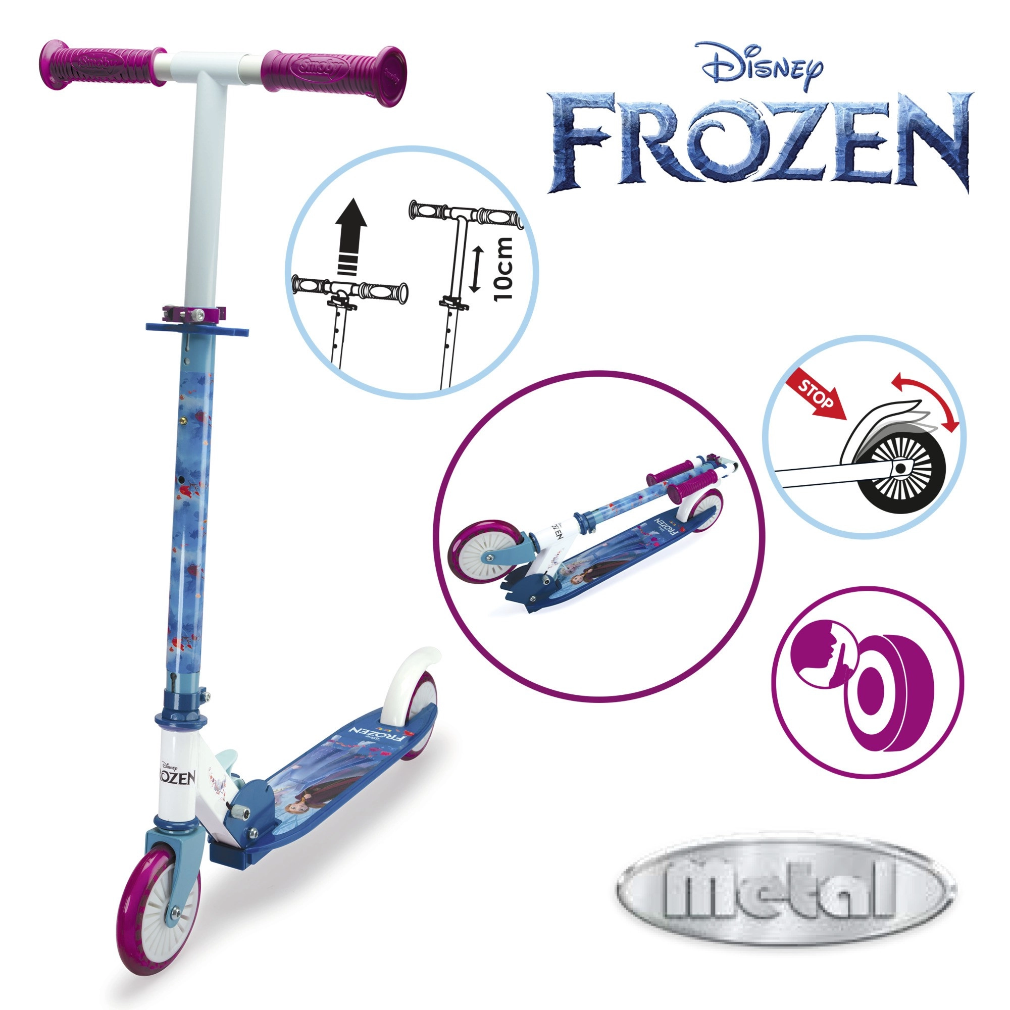 Dieser zweirädrige Roller mit beliebten Figuren aus DISNEY FROZEN begeistert kleine Fahrerinnen mit seinem attraktiven Design und zugleich sicherer Konstruktion. Dank des Aluminiumrahmens ist der Roller sehr leicht und gut zu tragen, dabei ausreichend stabil für den täglichen Einsatz. Der Klappmechanismus erleichtert Aufbewahrung und Transport.