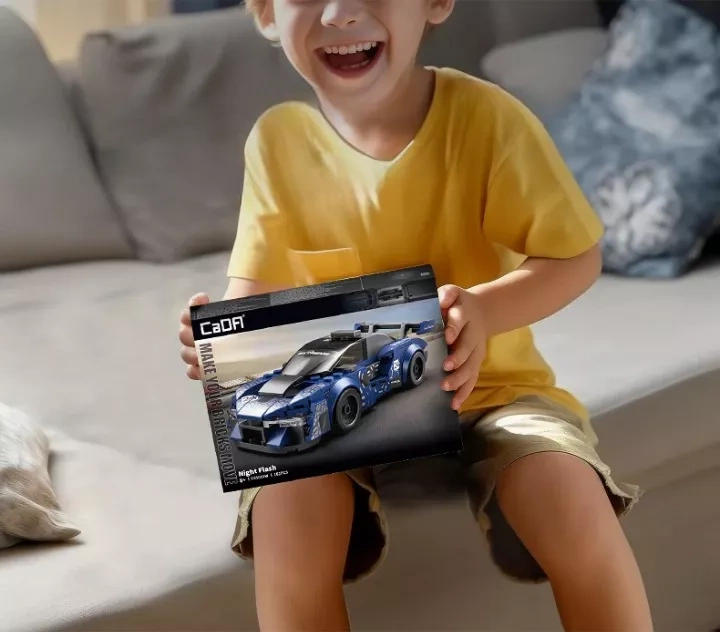 Das blaue Stadtauto CaDA Night Flash begeistert Kinder wie erwachsene Baumeister. Präzise ausgearbeitete Details an Karosserie und Innenraum, kräftige Farben und funktionale Elemente sorgen für viele Stunden kreativen Spielens und dynamische Rennen auf dem Boden.