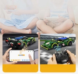 Das Modell bietet eine Dual-Mode-Steuerung: über den klassischen 2,4-GHz-Controller oder per Bluetooth-App mit vier Modi (Remote, Scratch Programming, Gyroscope, Path). Dank der Gummireifen meistert es verschiedene Oberflächen, erreicht eine Geschwindigkeit von bis zu 3,8 km/h und bietet eine stabile Reichweite von über 25 Metern. Das fertige Fahrzeug überzeugt mit einer grünen Karosserie mit schwarzen Akzenten und misst nach dem Aufbau 16 × 29 × 7 cm.
