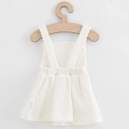 Entdecken Sie das elegante und bequeme Latzkleid NEW BABY Laura in Weiß, das durch seine feine Strickstruktur und hochwertige Verarbeitung besticht. Reine Baumwolle ist atmungsaktiv, sanft zur Kinderhaut und formstabil.